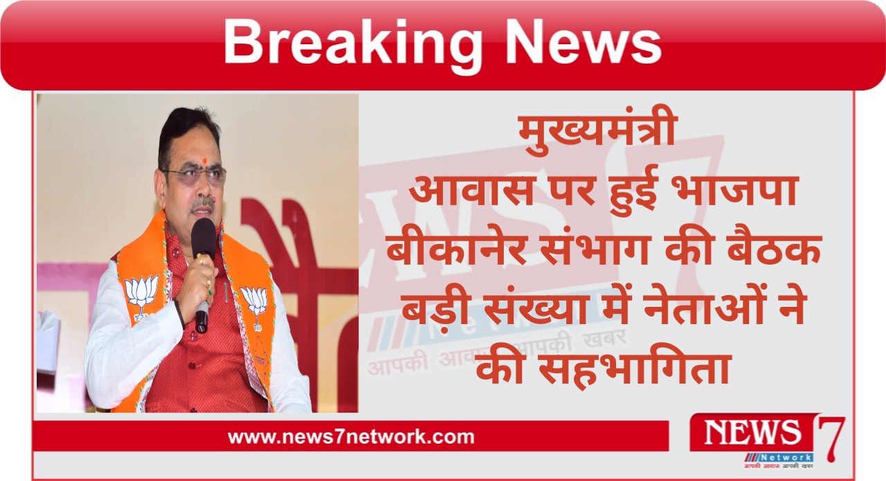 न्यूज 7 नेटवर्क जयपुर ब्यूरो।जयपुर मुख्यमंत्री आवास में रविवार को भाजपा बीकानेर संभाग की महत्वपूर्ण बैठक आयोजित हुई, जिसमें श्रीडूंगरगढ़ सहित बीकानेर संभाग के विभिन्न क्षेत्रों से भाजपा पदाधिकारी व कार्यकर्ता शामिल हुए।