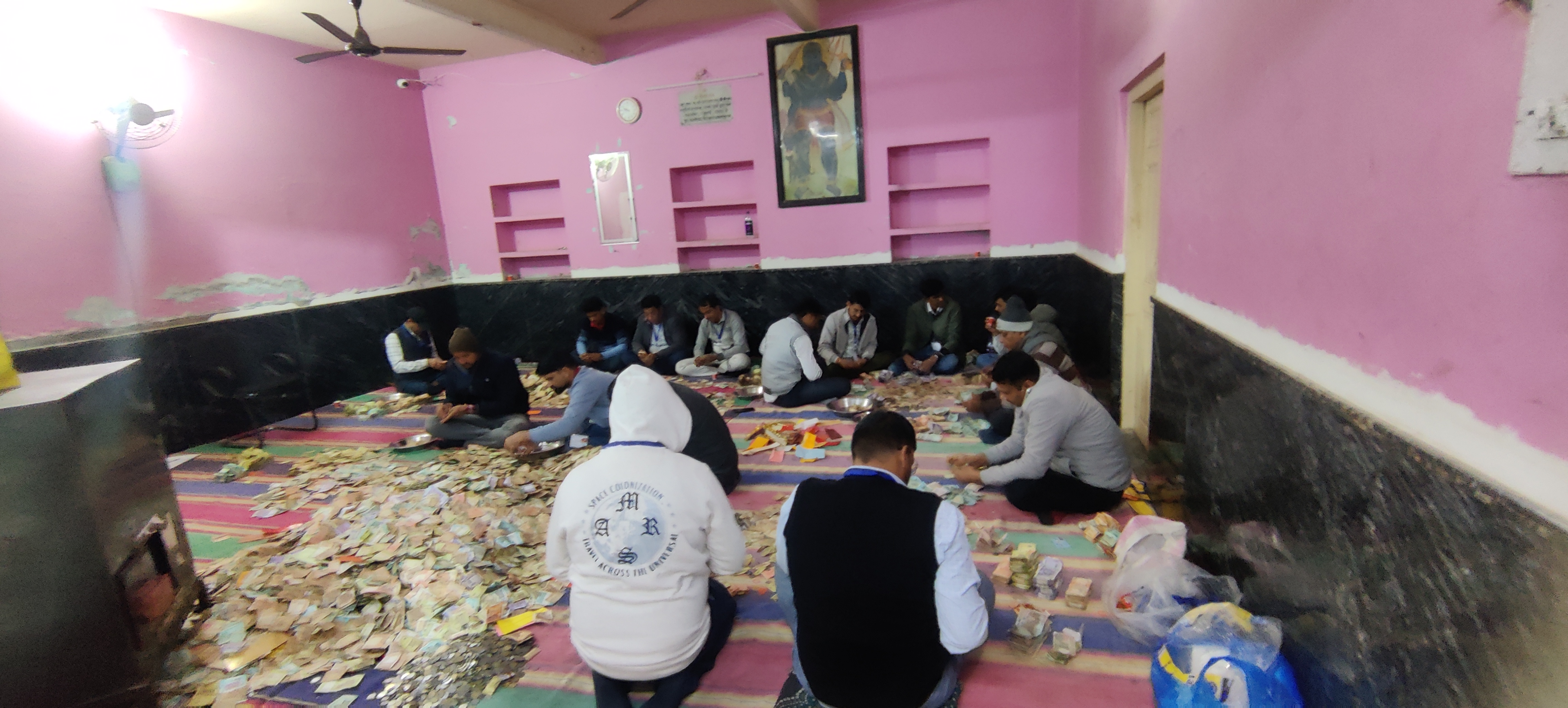 NEWS 7 NETWORK श्रीडूंगरगढ़। श्रीडूंगरगढ़ के तोलियासर गांव स्थित ऐतिहासिक विश्व रक्षक काल भैरव मंदिर में आज प्रशासन द्वारा दान पात्र खोले गए है।उपखंड अधिकारी शुभम शर्मा के निर्देश पर तहसीलदार श्रीवर्धन शर्मा के सुपरविजन में 60 कर्मचारियों की टीम बनाई गई जो तीन पारी में इन दान पात्र से निकले पैसों की गिनती करेगी और उसके बाद पूरी काउंटिंग करके स्टेट बैंक ऑफ़ इंडिया में जमा करवाया जाएगा ।