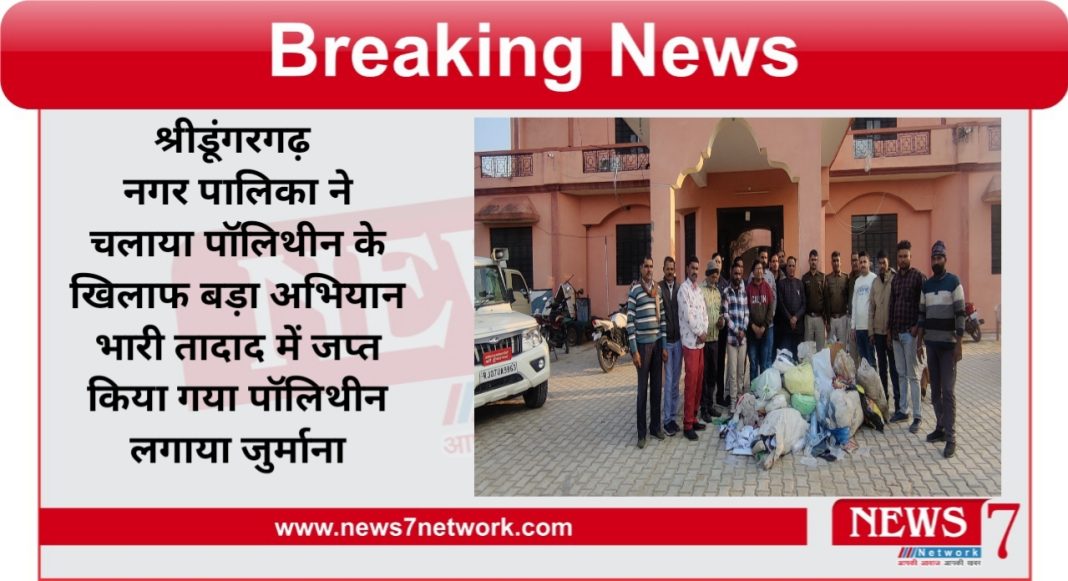 श्रीडूंगरगढ़ नगर पालिका ने चलाया पॉलिथीन के खिलाफ बड़ा अभियान भारी तादाद में जप्त किया गया पॉलिथीन लगाया जुर्माना