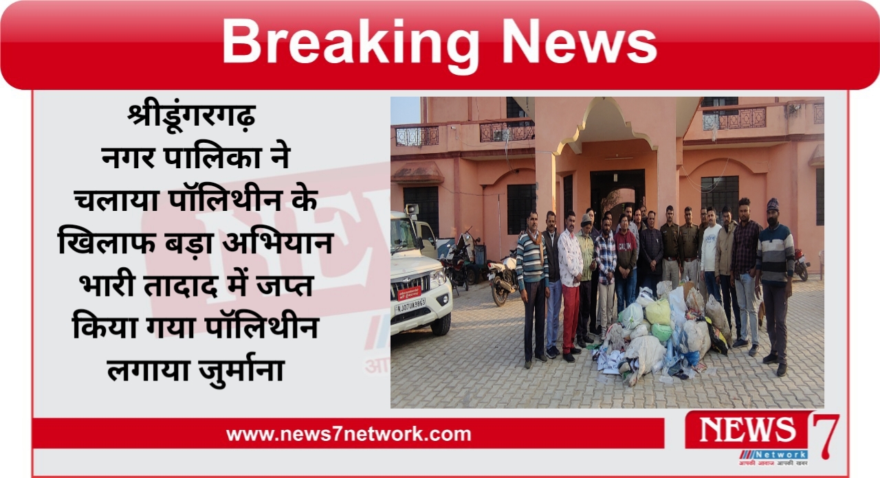 NEWS 7 NETWORK श्रीडूंगरगढ़। श्रीडूंगरगढ़  पॉलिथीन खाकर गोवंश की हो रही मौत के बाद अब नगरपालिका प्रशासन पूरी तरह से सख्त कार्रवाई करने के मूड में है और आज से अभियान भी शुरू कर दिया गया है।
